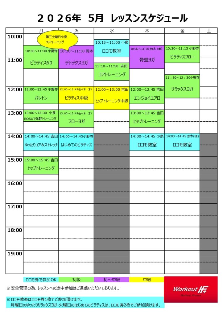 2026年5月レッスンスケジュール